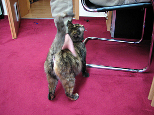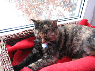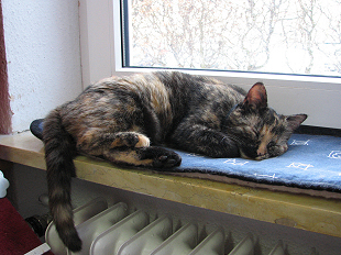 Am 12.2.2009 ist die kleine Schildpatt-Mietze bei uns eingezogen. Ursprünglich kommt die junge Dame aus Athen und wurde von Tierschützern nach Deutschland gebracht. An dieser Stelle herzlichen Dank an Frau Funk für ihr unglaubliches Engagement für notleidende Tiere. |